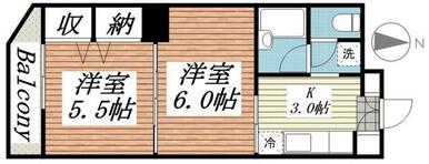 | 間取り | 2K(洋6・洋5.5) | 主要採光面 | 南 |